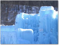 氷で造った像があると思っていたが、骨格に木を組んでトンネルや搭の様な形にして何度も何度も支笏湖の水をかけて凍らしてあるとの事。