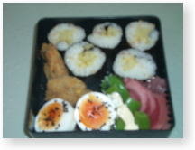 上記の写真は昨日の夕弁当、(御新香巻き、フライ物、茹で卵、スナップエンドウ、赤カブ漬け)